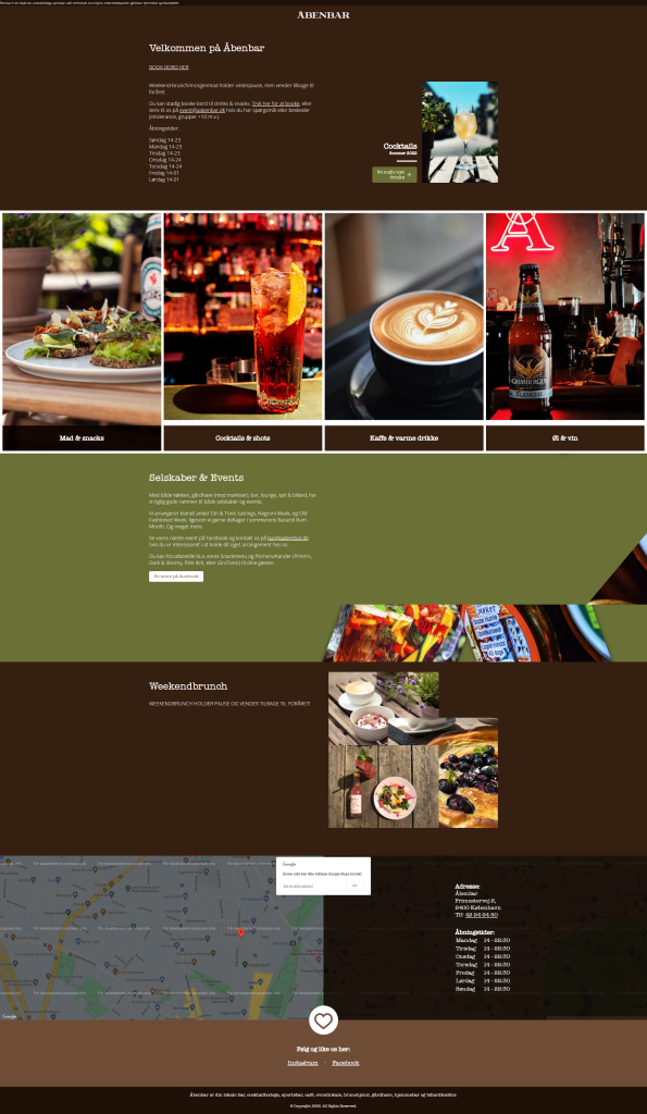 I had a conversation with Åbenbar’s owner and content manager about their needs for the new website. We concluded that it should be a simple website with two main focus areas: table and event booking, and easy access to the menu.
